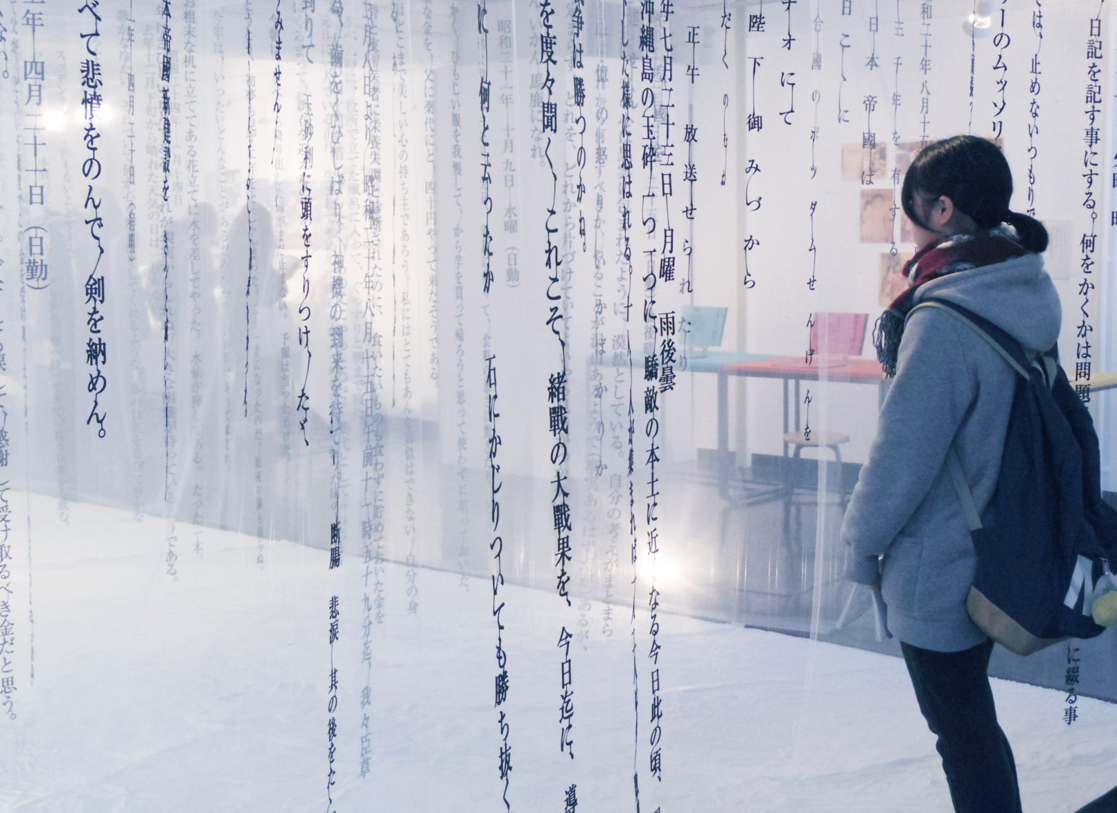 祖父の70年分の日記から、昭和20年〜昭和29年の間の日記を一部抜粋し、一本の道として空間に表現しました。